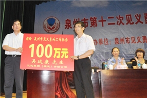 三遠(yuǎn)集團(tuán)董事長(zhǎng)、總裁吳遠(yuǎn)康先生向泉州市見(jiàn)義勇為工作協(xié)會(huì)捐款100萬(wàn)元人民幣 |