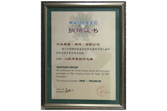 三遠(yuǎn)集團(tuán)向北京精瑞住宅科技基金會捐贈人民幣10萬元,支持中國人居科學(xué)技術(shù)進(jìn)步事業(yè)發(fā)展 |