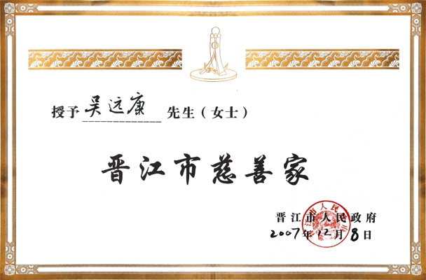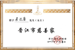 三遠(yuǎn)集團(tuán)董事長、總裁吳遠(yuǎn)康先生被授予“晉江市慈善家”稱號 |
