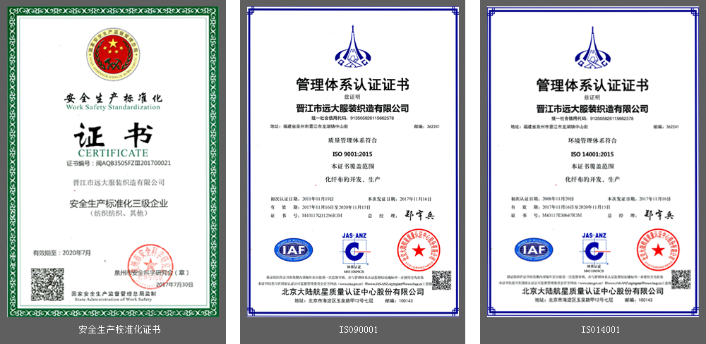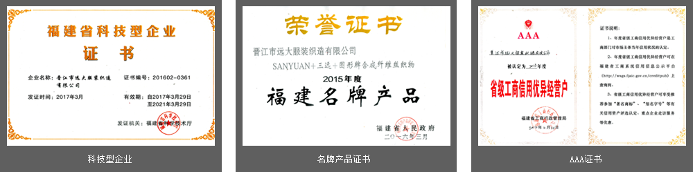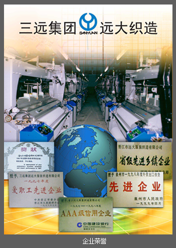 ? ? ? 晉江市遠大服裝織造有限公司創(chuàng)辦于1995年4月,公司地處于晉江市龍湖鎮(zhèn)中山街,位于306省道旁邊石金公路邊,距離石獅市服裝城不到6公里,地理位置優(yōu)越,交通便捷。廠區(qū)現(xiàn)占地面積10萬平方米,建有10幢通風(fēng)采光良好的標(biāo)準廠房,總建筑面積5萬㎡,供電、供水設(shè)施齊全,排水、消防、安全設(shè)施規(guī)范。公司目前擁有日本、韓國、臺灣等國家與地區(qū)生產(chǎn)的先進紡織設(shè)備雙噴和多臂織機1200臺,專業(yè)生產(chǎn)滌綸、錦綸、滌錦、滌棉交織布、氨綸彈力布、海島仿鹿皮、仿真絲及高科技功能性面料等,年產(chǎn)高檔化纖面料6000萬碼,產(chǎn)品銷往全國各地。